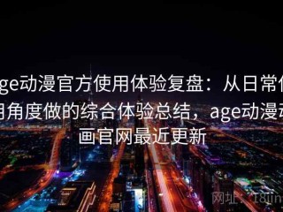 标题:age动漫官方使用体验复盘:从日常使用角度做的综合体验总结